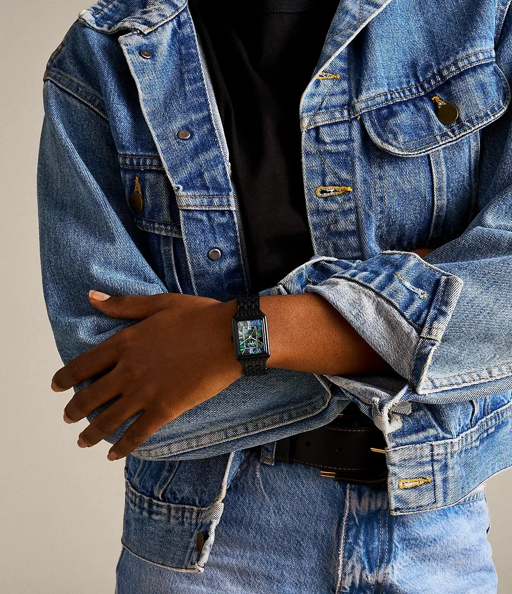 ساعة فوسيل Fossil للنساء أصلية موديل ES5340 متعددة الألوان واستيك معدن لون أسود.