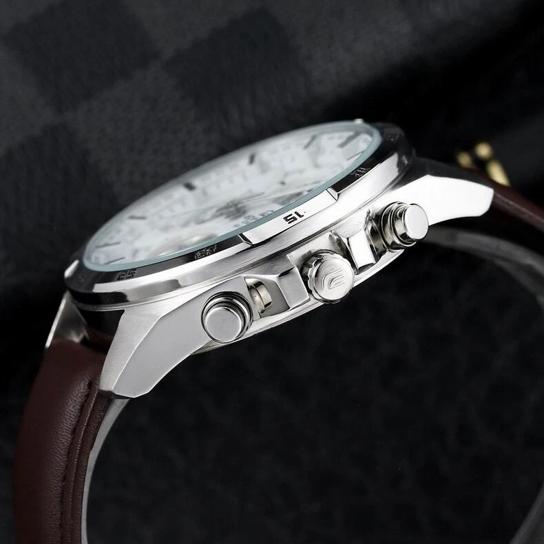 ساعة كاسيو اديفيس للرجال (ميرور اوريجينال) EFR-556TR-1K لون ابيض واستيك جلد طبيعي لون بني.