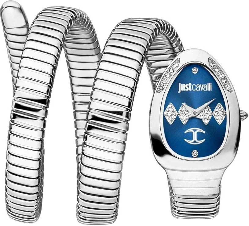 ساعة جاست كفالي Just Cavalli للنساء أصلية موديل JC1L230M0025 لون أزرق و استيك معدن ستانلس لون فضي.
