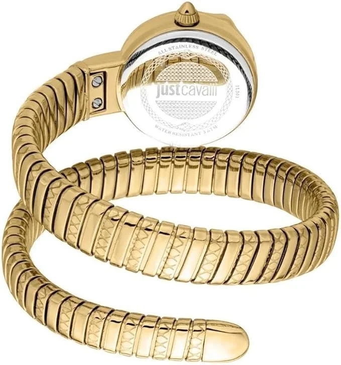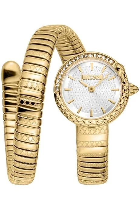ساعة جاست كفالي Just Cavalli للنساء أصلية موديل JC1L301M0025 لون فضي و استيك معدن ستانلس لون ذهبي.